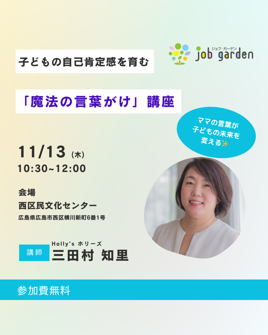 参加費:無料 ジョブガーデン電話番号 ☎0822361821